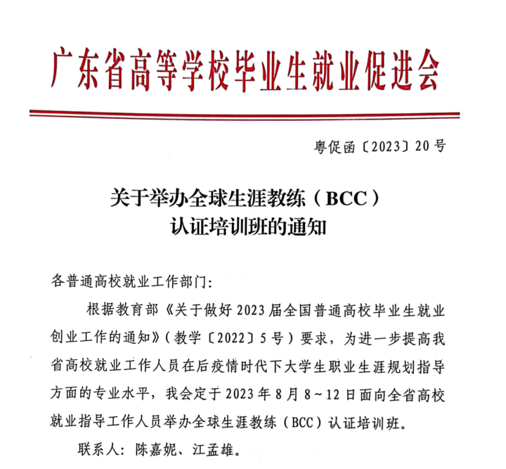 关于举办全球生涯教练(BCC)